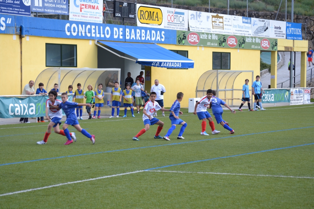 El primer partido nos midió al Independiente. Un partido muy igualado y que un gol en un posible fuera de juego faltando 8 minutos nos dejó sin capacidad de reacción. Mal comienzo de torneo pese a conservar el juego que últimamente desenvuelve el equipo. En el segundo round otra vez la UD Barbadás y otra vez victoria rojilla. 0-2 con un gran gol de Juan y otro del portero Abel que rivalizaba con el del Barbadás como porteros goleadores. Para finalizar la mañana el potente Areosa (finalista perdiendo con el Celta en la tanda de penaltys) y la necesidad de puntuar para evitar al Celta en el primer cruce. El partido fue más igualado que en el torneo de Aldán y al gol vigués en el último minuto respondió Juan frente al portero tras un saque de falta de Hugo. Un gol de diferencia nos dejo terceros empatados a todo con el Areosa en el grupo B.